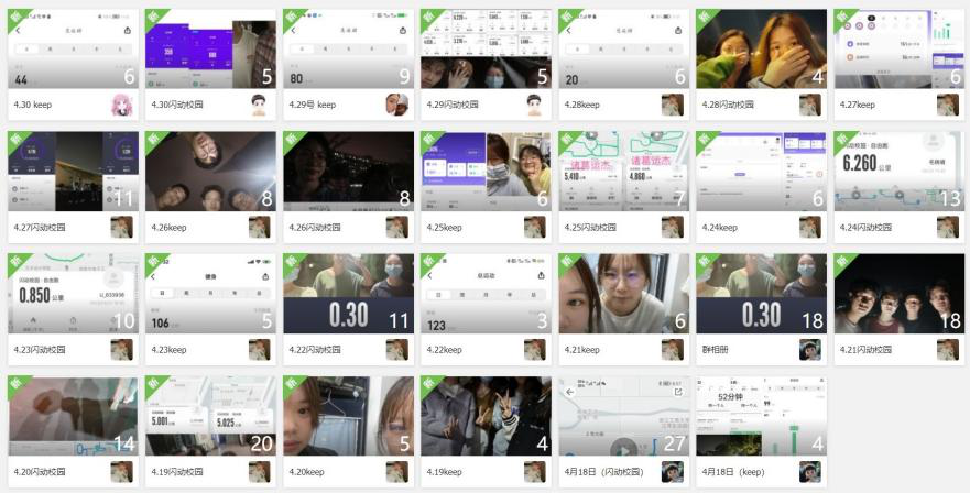 “以体健心·心晴相伴”运动结伴从4月14日启动到4月30日结束,持续半月。活动推出后立即引起同学们的竞相参与、踊跃参加,100个活动参与名额在1小时内注册一空。学生可以选择自行结伴也可以选择后台匹配结伴,活动中共有32支队伍结伴成功。活动期间,32支队伍积极参与活动,每日坚持结伴运动,在QQ群进行运动打卡,一张张跑步记录的截图,一个个因运动闪耀的笑脸每日在QQ打卡群里随处可见。大家在结伴运动中一起感受快乐运动氛围,为疫情背景下焦虑浮躁的生活增添了一丝乐趣,展现出良好的精神风貌。为调动学生的积极性,采用积分赛的形式,以运动积分的形式角逐出最佳的队伍。
