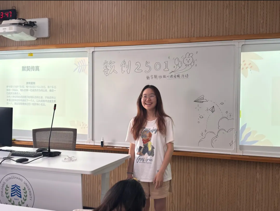 在心服成员的引导与温暖开场下,数创2501班的破冰活动正式拉开帷幕。一系列精心设计的互动小游戏迅速消融了初见的拘谨,教室里充满了欢声笑语,同学们的距离在轻松愉快的氛围中悄然拉近。