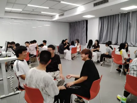 在轻松愉快的破冰环节后,活动进入“大学金三角”分享时刻。各个班助引导同学们围绕“进入大学后,你最满意、期待、烦恼的事情有哪些?”等话题,在纸上写下自己的真实想法,然后交流分享。有的同学倾诉了适应自主学习的困惑,有的同学畅谈了认识新朋友的喜悦,还有的同学表达了对未来专业学习的期待。在分享与倾听中,同学们发现彼此有着相似的心情与经历,隔阂逐渐消融,心灵在真诚的交流中紧紧相连。
