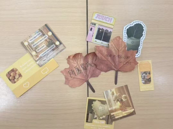 “猜地名”“动作猜猜猜”等游戏迅速点燃现场气氛,拉近了同学之间的距离。在“未来的明信片”环节,大家于银杏叶上认真书写对大学生活的美好愿景,以浪漫方式将破冰活动升华为一场关于梦想的约定。