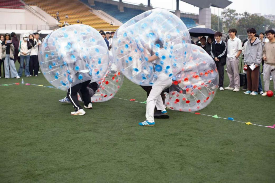 裁判哨声一响,充气碰碰球赛场瞬间沸腾!选手们身着充气装备,化身 “快乐勇士”,时而灵活躲闪,时而奋力撞击,欢声笑语与呐喊助威声交织成最热闹的乐章。激烈角逐中,永不言弃的拼搏精神展露无遗,每一次碰撞都是活力的释放,每一次坚持都值得喝彩。
