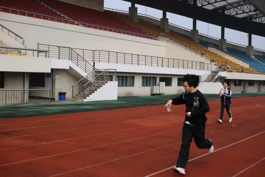 不用手触碰的纸张接力,考验着选手的灵活应变与肢体协调。大家奋力奔跑的同时,时刻关注着肩头的纸张,或挺胸抬头,或轻微调整姿势,用创意与技巧守护着 “接力使命”。全新的竞赛形式让接力赛充满新鲜感,选手们快速变通、从容应对,赛出了经济学院学子的青春活力与风采。
