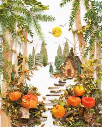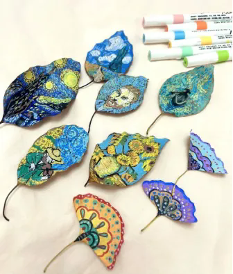 创作形式:以树叶、松果、枯枝等秋日自然材料为基础,发挥想象进行创作。可选形式包括树叶贴画(人物、风景、动物等主题)、树叶拓印(搭配颜料展现纹理之美)、落叶拼贴画、自然材料装饰画等,风格不限、创意无界。