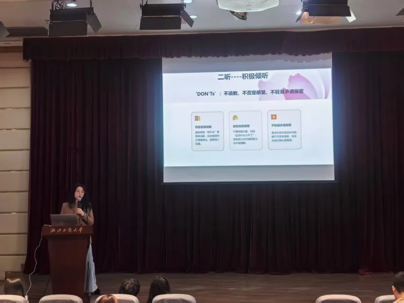 寝室,是大学生活中最基本的单元,也是我们停留时间最长的空间。一个和谐的寝室环境,是安心学习、快乐生活的基础;而一个矛盾的寝室,则可能成为问题的温床。为提升寝室长的责任意识与工作能力,共同营造安全、健康、积极的寝室氛围,10月29日,会计学院于图书馆一楼报告厅举行了“守望青春,相伴成长,寝室长的暖心指南”寝室长专题培训会。培训会由会计学院心理辅导站站长孙瑶老师主持,邀请浙江工商大学心理健康教育中心李瑜教授主讲,会计学院全体寝室长参加。