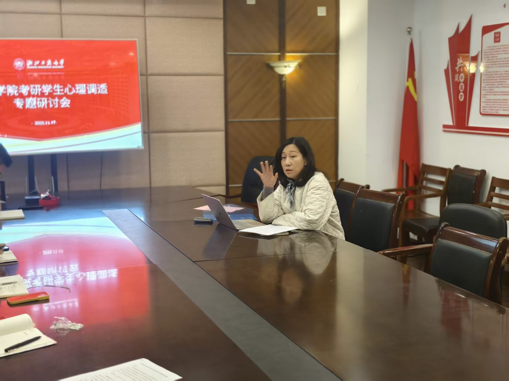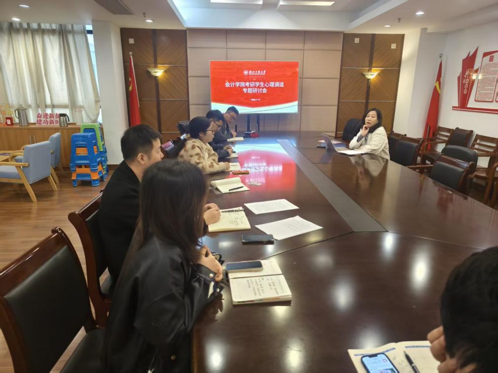 为精准缓解考研学生备考压力,帮助学子以积极心态应对冲刺阶段挑战,2025年11月17日上午,会计学院在综合楼701召开了考研学生心理调试帮扶专题研讨会。学院分管学生工作负责人蒋旻主持会议,心理辅导站全体老师参会,聚焦考研学子心理需求与实际困难,敲定系列帮扶方案。