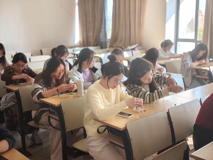 “枫色奇旅——拾珠串梦之遇”主题活动圆满落幕。有同学坦言“串珠过程中整个人静下来,压力一下子就释放了”。同学们在轻松温馨的氛围中沉浸式体验手工创作,通过挑选珠粒、搭配配色、穿绳打结,不仅亲手制作了专属手串,收获了满满的成就感与治愈感,还在互动交流中分享技巧、增进情谊,有效缓解了学业压力与陌生感。活动既为大家提供了发挥创意的平台,也搭建了交友沟通的桥梁,留下了温暖而珍贵的校园回忆。期待未来能为同学们带来更多优质活动,持续传递美好与热爱。