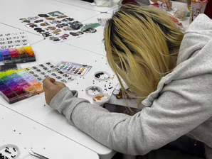 活动现场暖意融融,彩色拼豆在桌上整齐排列,同学们围坐在一起,挑选心仪色块,专注勾勒图案。从简单的图案到复杂的卡通人物,大家耐心拼接、细心按压,指尖翻飞间,压力随颗粒的堆叠慢慢消散。过程中,有人分享拼豆技巧,有人交流近期心事,欢声笑语不断。当一个个精致的拼豆作品逐渐成型,成就感与满足感油然而生。大家捧着亲手完成的作品合影留念,在沉浸式创作中放松身心,在互动分享中收获治愈,让这场心理减压之旅充满温暖与惊喜。