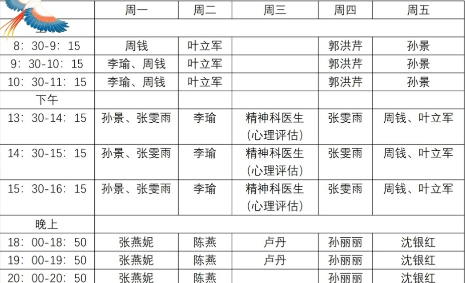 下沙校区咨询师排班信息表