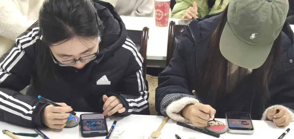 学生成长服务中心为丰富校园生活,缓减同学们的学业压力,特意开启了“把温暖画在石头上”的创意活动。在活动教室里,阳光为桌上的鹅卵石、颜料和画笔镀上柔和的光晕,同学们怀揣着好奇与期待陆续到场,一场与石头的温柔邂逅就此拉开序幕。