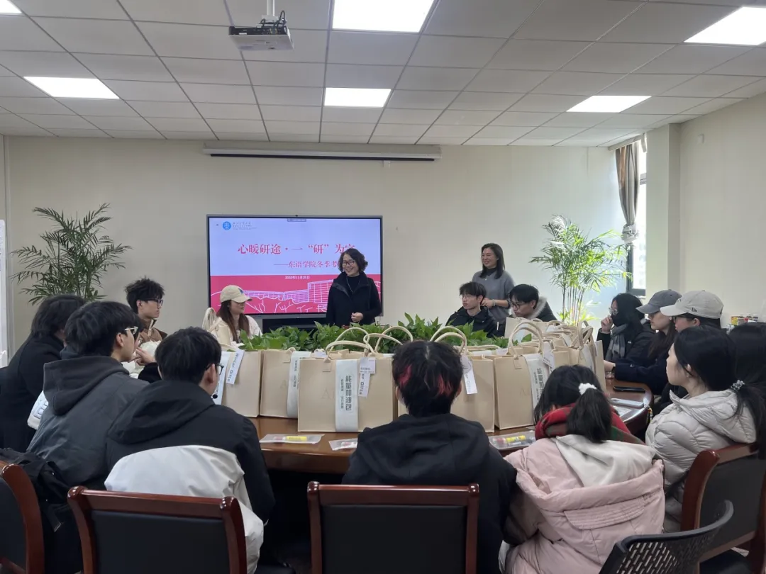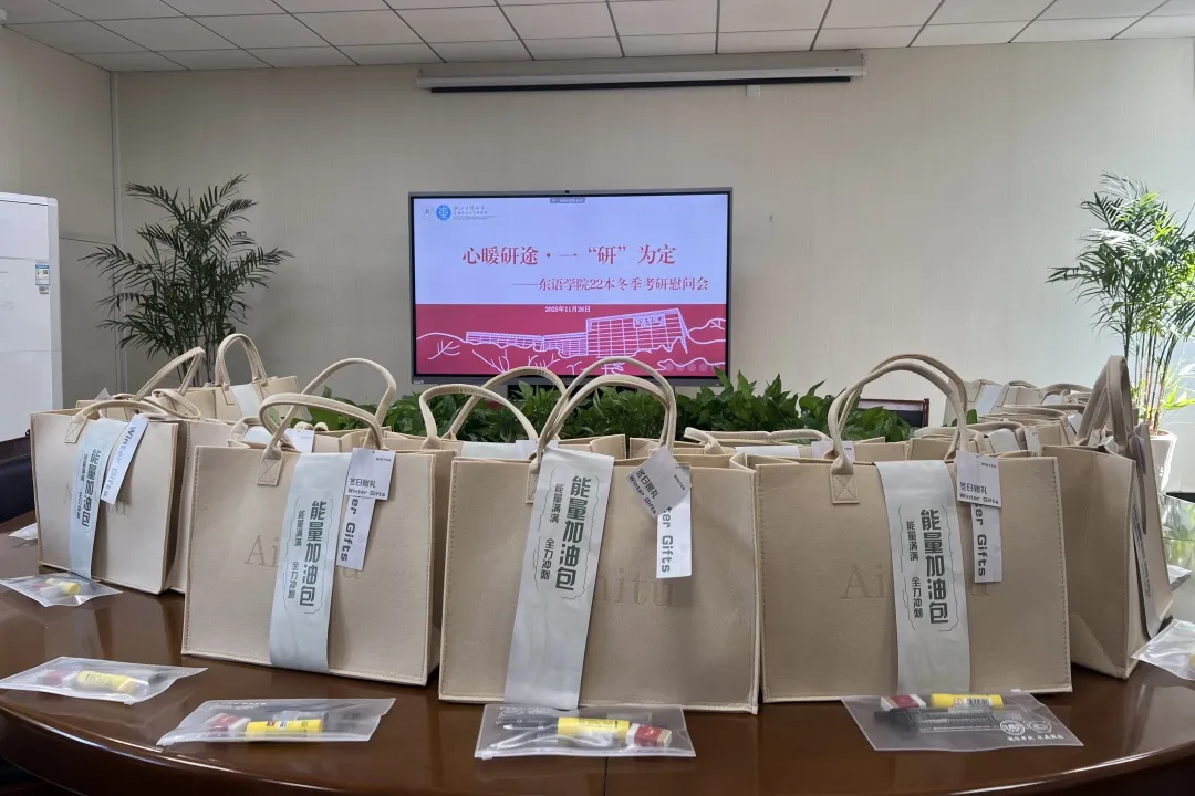 初冬的寒意日渐加深,全国硕士研究生招生考试即将到来。为缓解我院考研学子的备考压力,坚定他们的信心,东方语言与哲学学院于11月26日在学院楼302会议室举办了温馨的考研慰问会。院长江静、党委副书记陈燕、日语系主任吴毓华、哲学系老师刘旭、学办主管沈霄鹏、辅导员张政与备战考研的同学们齐聚一堂,送去冬日的温暖关怀与诚挚祝福。