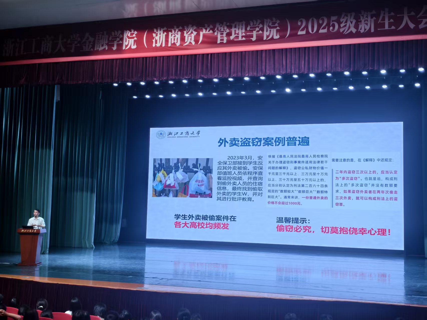 安全教育环节,学校安保部张强老师为全体新生开展入学安全教育。他首先强调了安全的重要性。安全是大学生活的基石,没有安全一切归零。之后,他从防范电信网络诈骗,人身与消防安全,交通与防盗安全等方面展开讲解,结合发生在校园内外的实际案例,让新生们初步树立了安全意识,为大学生活打下了良好的安全基础。